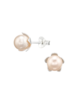 Silberne Blumen-Ohrstecker mit Echten Europäischen Kristallperlen