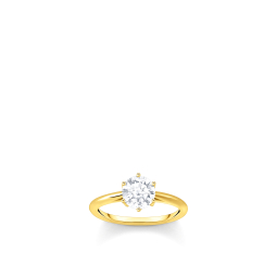 Un classique absolu et un incontournable de votre boîte à bijoux : cette bague rehausse toutes les tenues et s'adapte à toutes les occasions - qu'il s'agisse d'une réunion de famille, d'un déjeuner d'affaires ou d'un événement glamour. Elle est fabriquée en argent recyclé et plaquée or 18 carats, et sertie d'un zircon blanc taillé en brillant. Le sertissage ouvert permet à la pierre de briller intensément lorsqu'elle est exposée à la lumière.