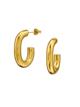 Améliorez votre collection avec ces Puces d'Oreilles Créoles Cleo en Acier Inoxydable de notre gamme Acier et Titane—séduisantes, durables et fabriquées en Acier Inoxydable de Qualité Chirurgicale avec une finition lisse Plaqué Or IP/PVD. Cette paire a un poids total de 2.00 g et mesure 17.7 mm x 26 mm.